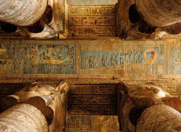 Au lever du jour, notre dahabieh franchit l’écluse d’Esna. Juste après, cap sur un joyau discret : le Petit Temple de Khnum, caché entre les maisons anciennes, dédié au dieu créateur à tête de bélier. Levez les yeux : son plafond céleste conserve encore des couleurs étonnamment vives.